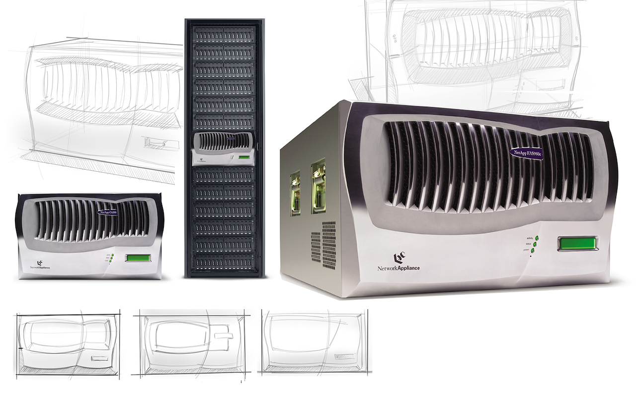 Industrial design language I created for Netapp that used gills as an inspiration for the venting scheme. The front facias were die-cast aluminum and hand polished to a mirror reflection.
