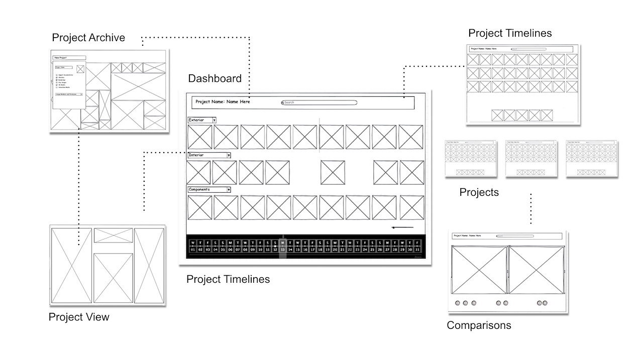 Sketches were converted to low fidelity wireframes to identify user workflows and frameworks needed to support an intuitive user experience.