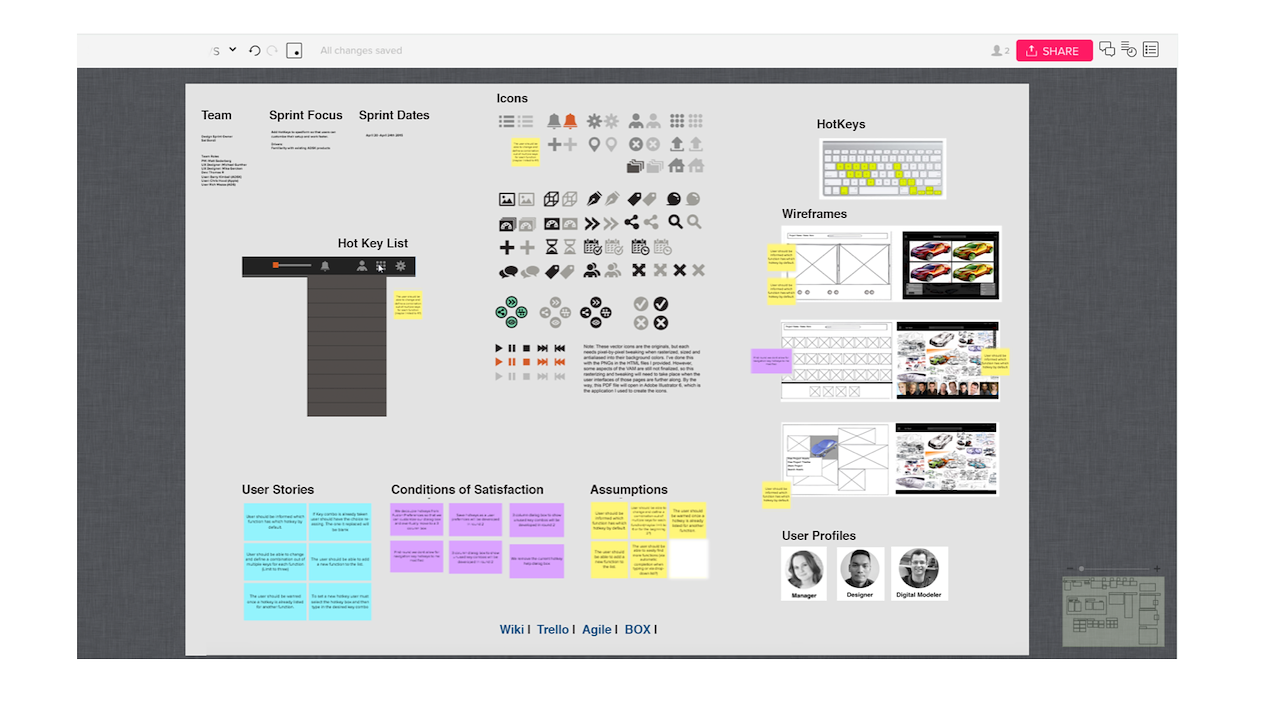 Work transparency is always a guiding principle when working at a fast pace with team members. To enable a collaborative work environment I create and manage cloud-based work boards for capturing all relevant project information throughout a typical two-week design sprint