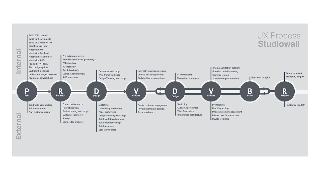 User interviews were conducted on-site in context of work environments. Engagement sessions consisted of user Interviews, persona shadowing, fly on the wall observations, heuristics reviews, usability tests, and usability audits