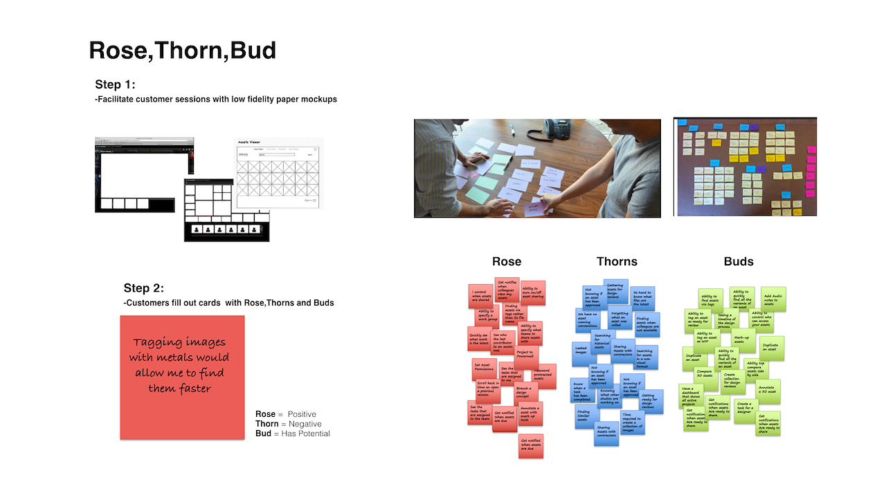 To make all customer engagement sessions interactive, I introduced card sorting exercises at the end of each meeting to capture ideas that were, good, bad or had potential.