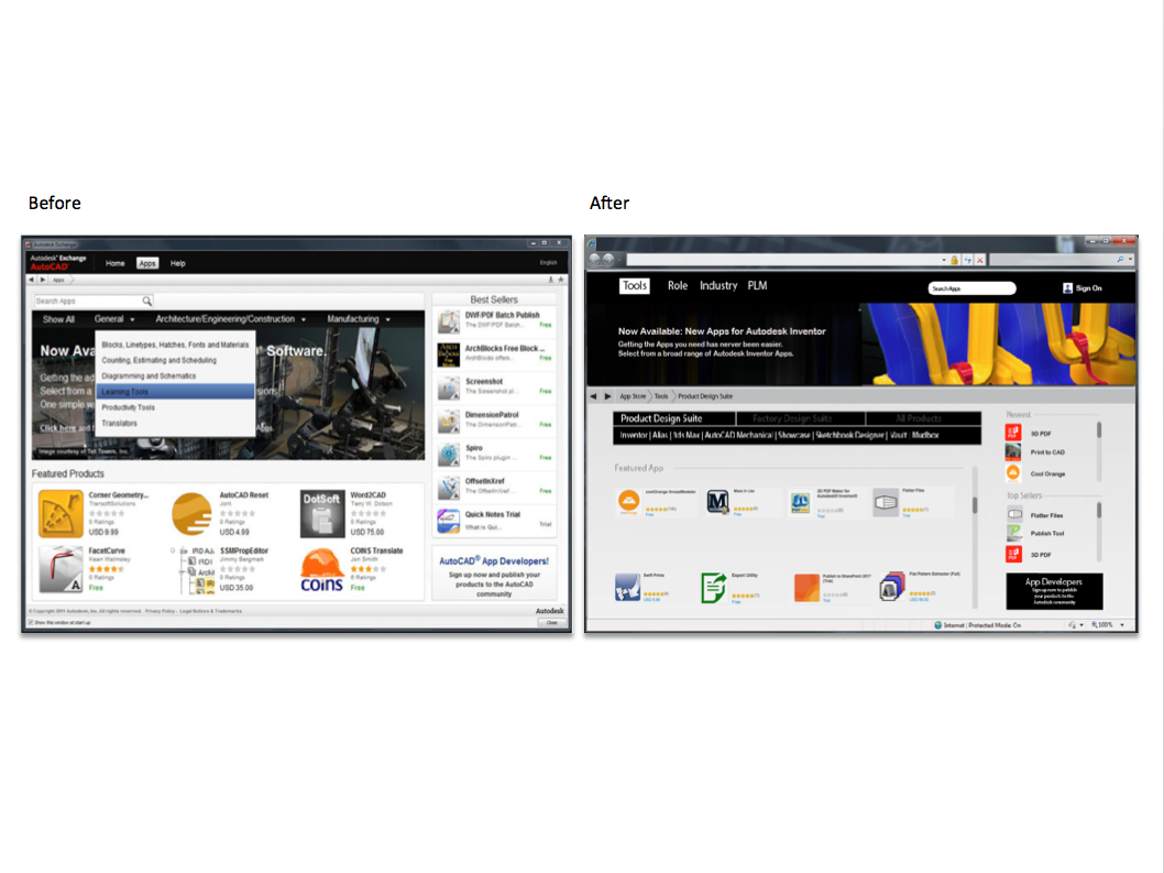 Before and after images of the App store. Both daily downloads and the number of trial-to-sale conversions increased significantly after the changes were implemented.